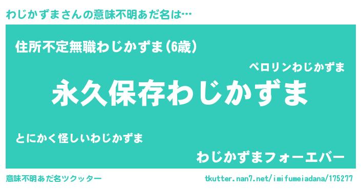 | 男性向けラノベタイトル風あだ名 | 『わじかずまという概念が存在しない退屈な世界 』 |