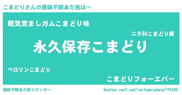 | 胡散臭い通販商品みたいなあだ名 | 『絶対に幸福をもたらす健康食品…その名も「こまどり」』 |