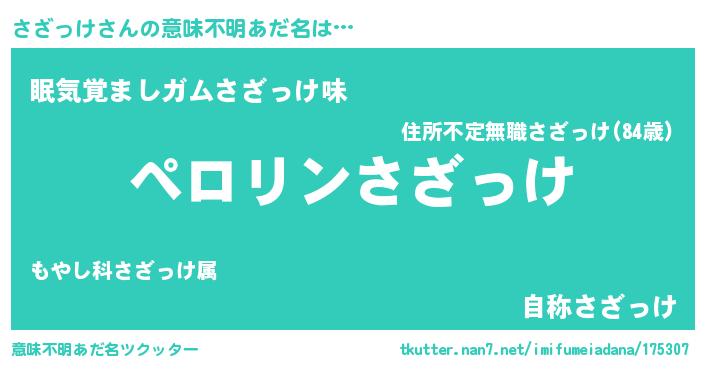 | 胡散臭い通販商品みたいなあだ名 | 『億万長者になれる水晶球…その名も「さざっけ」』 |