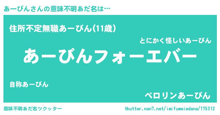 | 欧米人風あだ名 | 『あーびんクリステル』 |