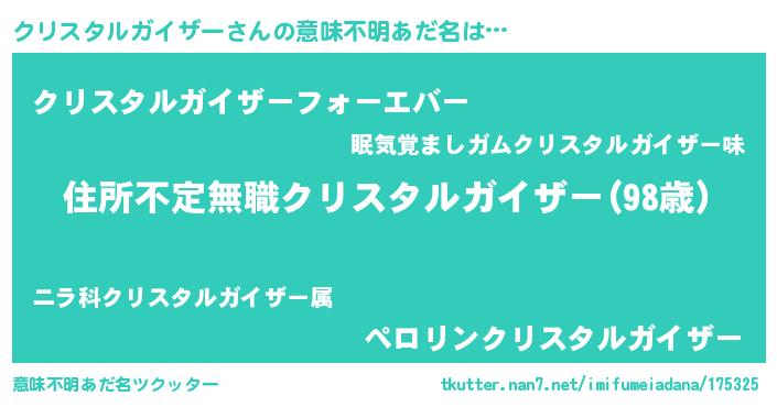 | 胡散臭い通販商品みたいなあだ名 | 『あなたにだけ特別に提供する世界で10本だけ現存している希少なブランデー…その名も「クリスタルガイザー」』 |