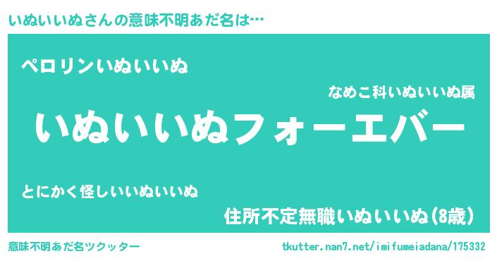 | 男性向けラノベタイトル風あだ名 | 『やはりいぬいいぬの青春ラブコメはまちがっている 』 |