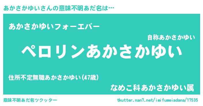 | 胡散臭い通販商品みたいなあだ名 | 『必ず成功する霊験あらたかなお札…その名も「あかさかゆい」』 |