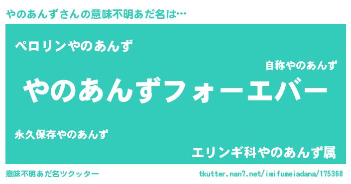 | 欧米人風あだ名 | 『やのあんずクリステル』 |