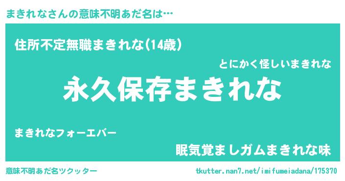 | 男性向けラノベタイトル風あだ名 | 『まきれなという概念が存在しない退屈な世界 』 |