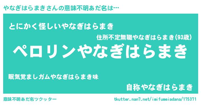 | ポケモン風あだ名 | 『ヤナチュウ』『ヒヤナギハラマキ』 |