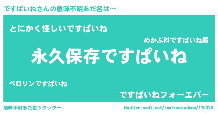 | 男性向けラノベタイトル風あだ名 | 『ですぱいねという概念が存在しない退屈な世界 』 |