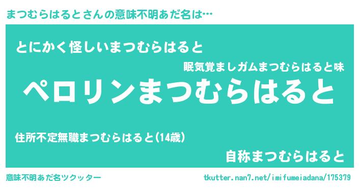 | 胡散臭い通販商品みたいなあだ名 | 『億万長者になれるブレスレット…その名も「まつむらはると」』 |