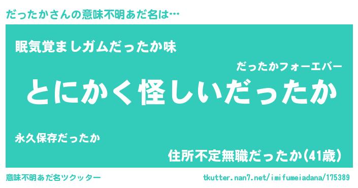 | 男性向けラノベタイトル風あだ名 | 『だったかに滅ぼされるだけの簡単なお仕事です』 |
