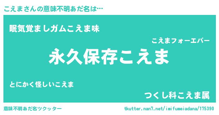 | ヒーロー風カッコイイあだ名 | 『ネオコエマ』『愛の使者こえま』 |