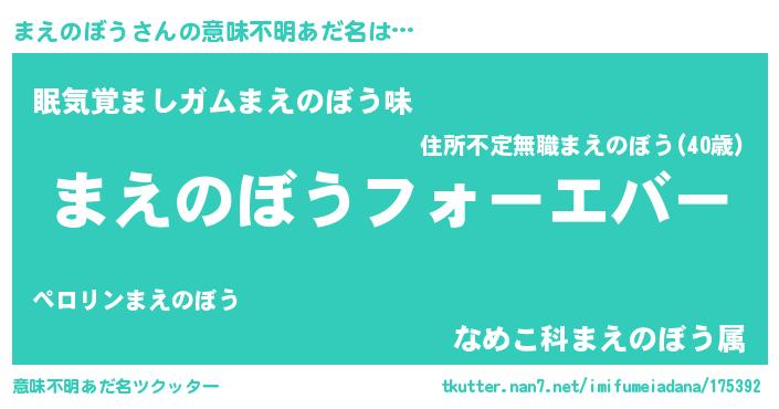 | 恥ずかしいあだ名 | 『まえっちょ』『ボンバーヘッドまえ』 |