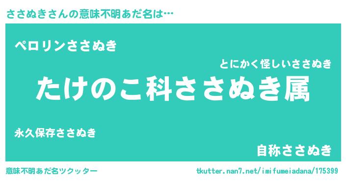 | 男性向けラノベタイトル風あだ名 | 『転生したらささぬきだった件』 |