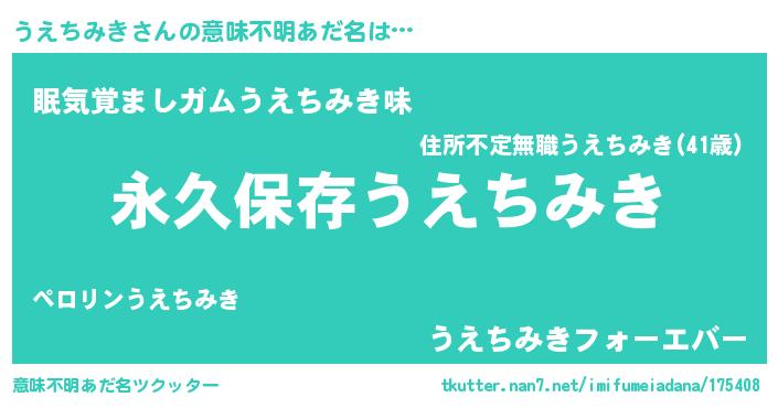 | 胡散臭い通販商品みたいなあだ名 | 『来世でも幸せになれる水素水…その名も「うえちみき」』 |