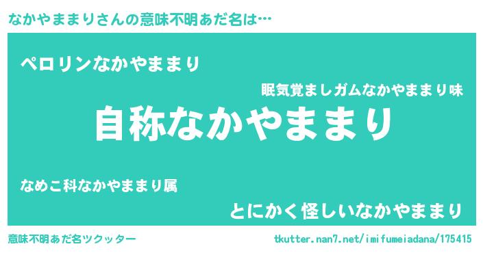 | 欧米人風あだ名 | 『なかやままり・ステッグマイヤー』 |