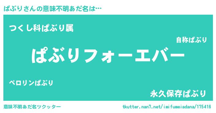 | 女子向けラノベタイトル風あだ名 | 『ぱぶりの雑貨屋さん』『闇のぱぶり』 |