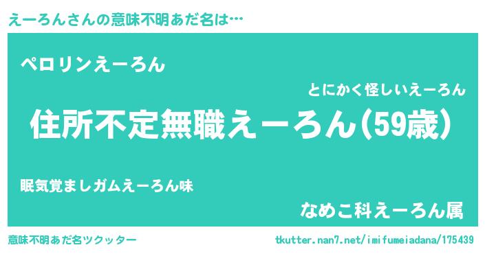 | 男性向けラノベタイトル風あだ名 | 『魔弾の王とえーろん』『えーろんの憂鬱』 |