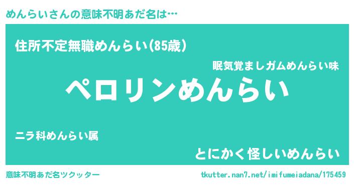 | 男性向けラノベタイトル風あだ名 | 『めんらいの憂鬱』 |