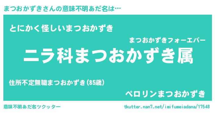| ポケモン風あだ名 | 『マツキング』『ヒマツオカズキ』 |