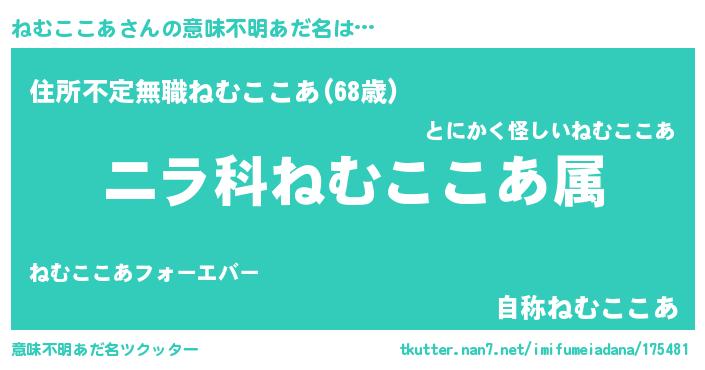 | 欧米人風あだ名 | 『トリンドルねむここあ』 |