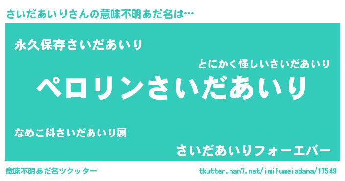 | ヘコむあだ名 | 『さいにー』『さいだあいり(苦笑)』 |