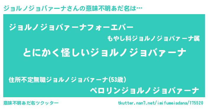| 欧米人風あだ名 | 『ウサインジョルノジョバァーナ』 |