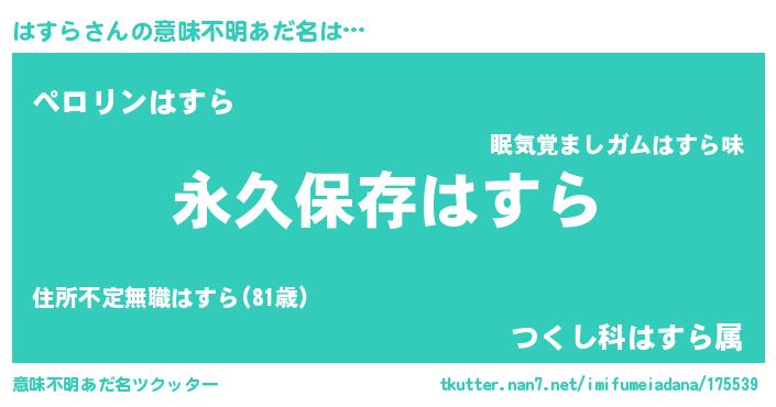| 胡散臭い通販商品みたいなあだ名 | 『来世でも幸せになれる健康食品…その名も「はすら」』 |