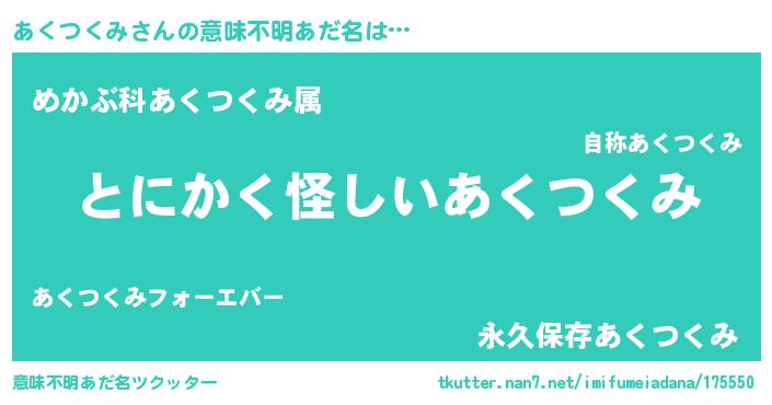 | ポケモン風あだ名 | 『ヒアクツクミ』『アクキング』 |