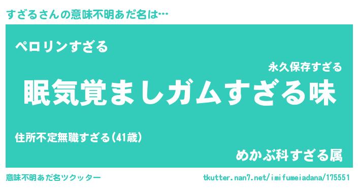 | ヘコむあだ名 | 『すざっふぃ~』『すざる(小並感)』 |