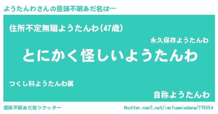 | 女子向けラノベタイトル風あだ名 | 『ようたんわの卵を拾いまして』 |