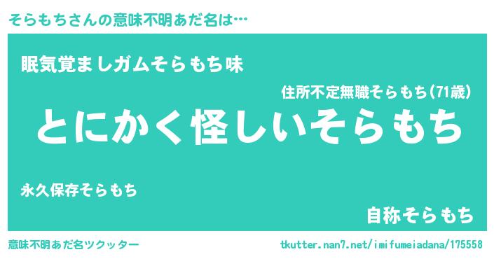 | ヒーロー風カッコイイあだ名 | 『天弓騎士ソラ』『正義の使者そらもち』 |