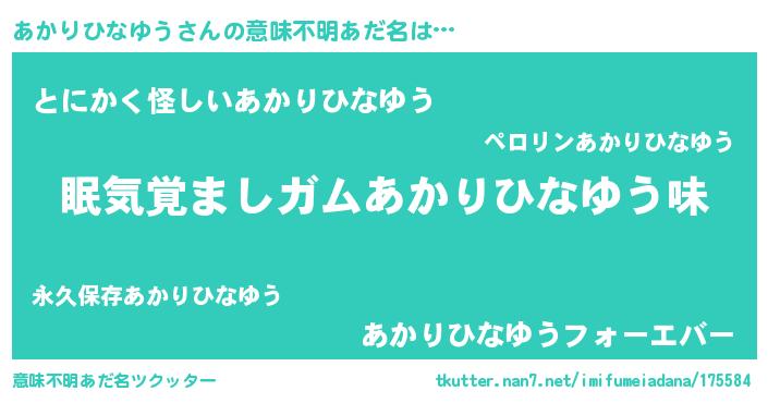 | 胡散臭い通販商品みたいなあだ名 | 『100人中100人が認めたイリジウム磁石…その名も「あかりひなゆう」』 |