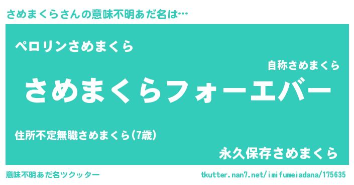 | 男性向けラノベタイトル風あだ名 | 『やはりさめまくらの青春ラブコメはまちがっている 』 |