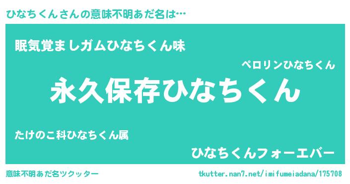 | 男性向けラノベタイトル風あだ名 | 『ひなちくんという概念が存在しない退屈な世界 』 |
