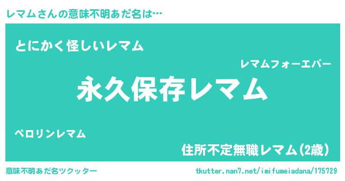 | ヘコむあだ名 | 『レマム(笑)』『レマお』『豆乳』 |