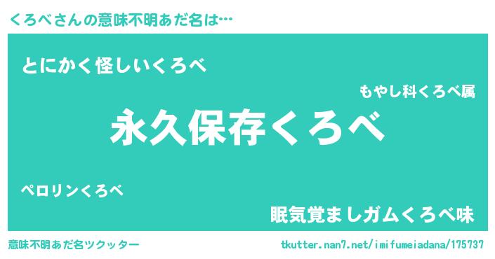 | 胡散臭い通販商品みたいなあだ名 | 『来世でも幸せになれる健康食品…その名も「くろべ」』 |
