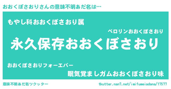| 女子向けラノベタイトル風あだ名 | 『異世界で失敗しない100のおおくぼさおり』 |