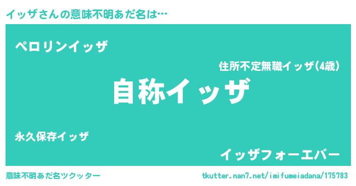 | 男性向けラノベタイトル風あだ名 | 『Re:イッザから始める異世界生活』 |