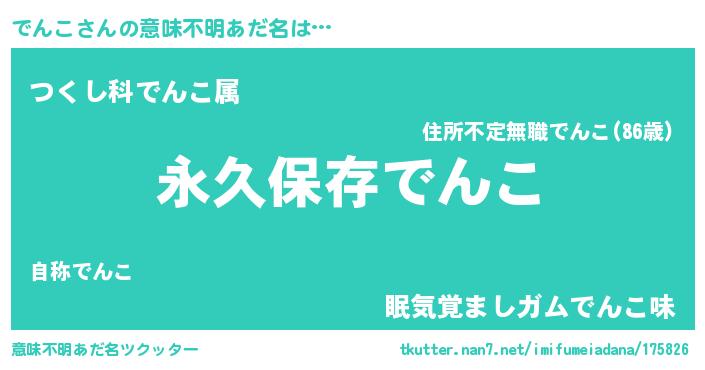 | 胡散臭い通販商品みたいなあだ名 | 『来世でも幸せになれる健康食品…その名も「でんこ」』 |