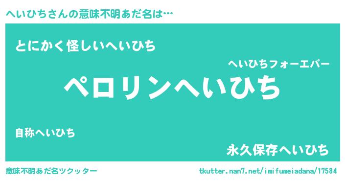 | ポケモン風あだ名 | 『ヘイチュウ』『ヒヘイヒチ』 |