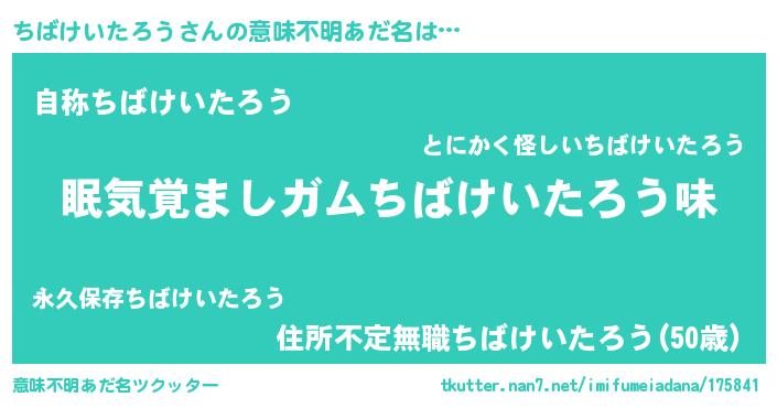 | 男性向けラノベタイトル風あだ名 | 『ノーゲーム・ノーチバケイタロウ』 |