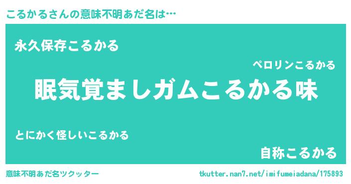 | ヘコむあだ名 | 『こるかる(爆)』『こるもー』『牛乳』 |