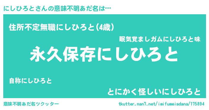 | ヘコむあだ名 | 『にしひろと(小並感)』『にしっぺ』 |
