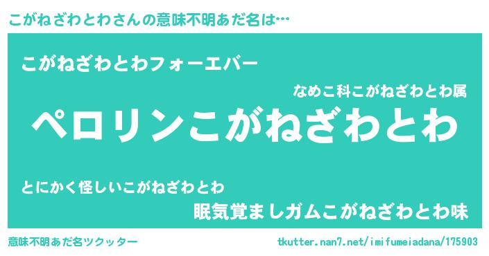 | 胡散臭い通販商品みたいなあだ名 | 『必ず成功するブレスレット…その名も「こがねざわとわ」』 |