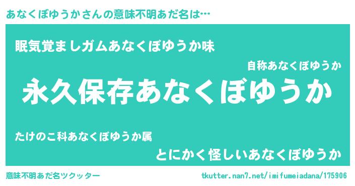 | 胡散臭い通販商品みたいなあだ名 | 『絶対に幸福をもたらす水素水…その名も「あなくぼゆうか」』 |