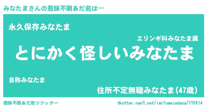 | 欧米人風あだ名 | 『みなたま・ステッグマイヤー』 |