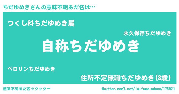 | ヘコむあだ名 | 『ちだゆめき(苦笑)』『ちだもー』 |
