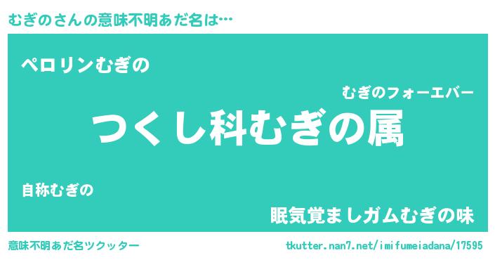 | 胡散臭い通販商品みたいなあだ名 | 『億万長者になれるブレスレット…その名も「むぎの」』 |