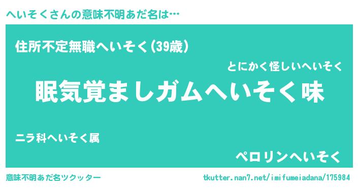 | 胡散臭い通販商品みたいなあだ名 | 『100人中100人が認めた隕石のかけら…その名も「へいそく」』 |