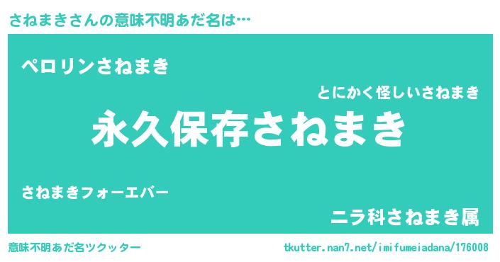 | ヘコむあだ名 | 『さねまき(小並感)』『さねにゅー』 |
