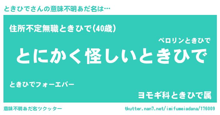 | 女子向けラノベタイトル風あだ名 | 『ときひでは平凡を望む』 |